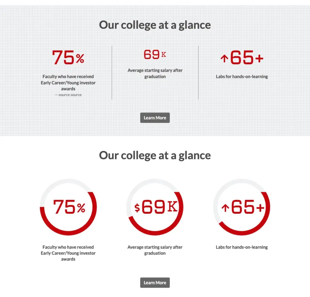 Standard, or circles. Standard is basic text display, where circles will animate a graph as people scroll on the page. Keep in mind circles only works if the stats make sense in the 1-100 scale.