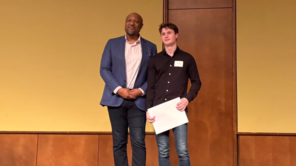 May 6, 2025 Ewer awarded first ECE alumni-sponsored Hilldale Undergraduate Research Fellowship Written By: Allyson Crowley Departments: Electrical & Computer Engineering Categories: Awards|Research|Students|Undergraduate At the 2025 Chancellor’s Undergraduate Awards Ceremony, held April 28 in Varsity Hall at Union South, junior Ethan Ewer was honored with a prestigious Wisconsin Hilldale Undergraduate Research Fellowship. Ewer, who is studying electrical engineering and music, was among 101 students recognized for their commitment to undergraduate research. The fellowship will support Ewer’s independent research, recognizing both his academic excellence and intellectual curiosity. This is the first time this particular Hilldale Fellowship has been awarded. The fellowship is sponsored by the Department of Electrical and Computer Engineering, with support from the J & H Wang Family Fund. ECE alumnus Junjue “Jay” Wang, now a senior machine learning engineer at Apple, traces his own research journey back to UW–Madison, where his undergraduate experience, including a Hilldale Fellowship, sparked his passion for innovation. Wang hopes to inspire future ECE students to explore the research process and connect with faculty mentors early in their academic careers, just as he once did. Hilldale Fellowships provide $4,000 to each undergraduate student and $1,000 to their faculty advisor to support their research efforts. Ewer’s project, Draft Model for Online LLM Hyperparameter Selection, is conducted under the guidance of Department of Electrical and Computer Engineering’s Dugald C. Jackson Assistant Professor Kangwook Lee and exemplifies the department’s emphasis on hands-on, high-impact learning experiences. At the ceremony, UW–Madison Provost Charles Isbell highlighted the significance of the occasion, saying, “You’ve reminded us all that amazing things can happen when talent meets opportunity.” In addition to Ewer, two other ECE students received Hilldale Fellowships, which are supported by the Provost’s Office and the Hilldale Fund. Aleksandr Kralovec, a junior studying electrical engineering and advised by Biomedical Engineering Professor Melissa Skala, earned the fellowship for his project, Investigating CF Neutrophil Metabolism and Differentiation with Optical Metabolic Imaging. Colin Maggard, a junior majoring in computer engineering, computer sciences, and data science, received the award for his project, Optimizing Message Features for Automated Participant Messaging and Support Systems, under the mentorship of Professor John Curtin from the Department of Psychology. ECE sophomores Linda Hao and Hao Zhou received Sophomore Research Fellowships, which provide $3,000 to support a research project under the guidance of UW–Madison faculty or staff. Linda Hao, an electrical engineering student advised by ECE Assistant Professor Eric Tervo, earned the fellowship for her project, Impacts of Gridline Scattering and Reflectance on Thermophotovoltaic Cell Performance. And Zhou, a computer engineering student advised by ECE Assistant Professor Robert Jacobberger, received the award for the project, Growth of Large-Scale Single-Crystal 2D Materials on Commercial Copper Foils. A version of this story was originally published by UW–Madison News. Top photo submitted by Ewer: Provost Isbell (left) with Ewer (right).