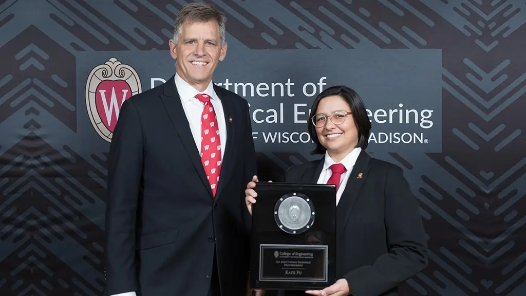 October 20, 2022 Recognizing exceptional Mechanical Engineering faculty Written By: Caitlin Scott Departments: Mechanical Engineering Categories: Awards|Faculty Mechanical Engineering highlighted faculty excellence with an investiture ceremony at the end of September. John Bollinger Chair of Mechanical Engineering & Bernard A. and Frances M. Weideman Professor Darryl Thelen welcomed the twelve faculty honorees, and colleagues, staff, friends, and family to the ceremony and reception in recognition of their scholarly and educational achievements. Executive Associate Dean and Arthur F. Hawnn Professor David A. Noyce and Associate Dean for Advancement Cathleen Walters joined the festivities on behalf of the College of Engineering. Learn about each honoree’s research and teaching interests in the Fall 2022 investiture program. Peter AdamczykMead Witter Foundation Professorship Mark AndersonConsolidated Papers Professorship Krishnan SureshMead Witter Foundation Professorship Lih-Sheng (Tom) TurngConsolidated Papers Professorship Christian FranckBjorn Borgen Professorship Kate FuJay and Cynthia Ihlenfeld Professorship Sage KokjohnJean and Phil Myers Professorship Dan NegrutBernard A. & Frances M. Weideman Professorship Greg NellisWilliam A. and Irene Ouweneel-Bascom Professorship Tim OsswaldKuo and Cindy Wang Professorship Xiaoping QianElmer R. and Janet A. Kaiser Professorship Dave RothamerRobert Lorenz Professorship In addition to the named professorships, Prof. Thelen also recognized four ME faculty who were recently promoted. Congratulations to Associate Professor Lianyi Chen, Associate Professor Wenxiao Pan, Associate Professor Alejandro Roldán-Alzate, and Full Professor Mario Trujillo. Thank you to all for the work you do each day with your students and your research that makes the Department of Mechanical Engineering exceptional. Darryl Thelen and Dan Negrut Scott Sanders and Peter Adamczyk Xiaoping Qian Ying Li and department guest Dr. Ameet Aiyangar Darryl Thelen, Christian Franck, and David Noyce Colleagues and family at the reception Krishnan Suresh Mark Anderson Greg Nellis Sage Kokjohn Lih-Sheng Turng and John Pfotenhauer Tim Osswald and Alejandro Roldán-Alzate Featured image: Darryl Thelen with Jay and Cynthia Ihlenfeld Associate Professor Kate Fu