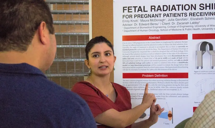 On Friday, Dec. 8, 2017, undergraduate students in the Department of Biomedical Engineering (BME) at the University of Wisconsin-Madison gathered to showcase the fruits of a semester’s labor: 61 unique healthcare solutions for 61 unique client problems were on display at the biannual design poster session.