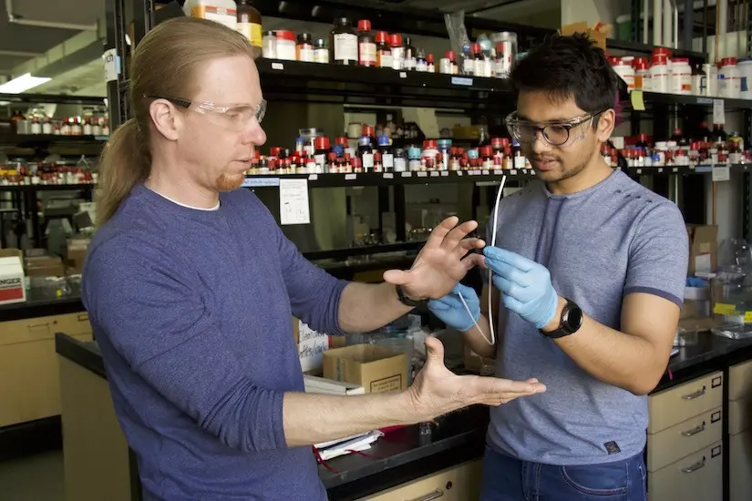 David Lynn, Duane H. and Dorothy M. Bluemke Professor and Vilas Distinguished Achievement Professor of chemical and biological engineering at UW–Madison, creates the patented coating by alternately dipping an object in two polymer solutions.