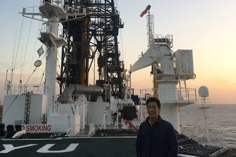 Lingering motion sickness is one of the occupational hazards of working at sea off the coast of Japan for three weeks. Hiroki Sone can attest to that, having spent part of the fall 2018 semester on the deepest scientific oceanic drilling project ever.
