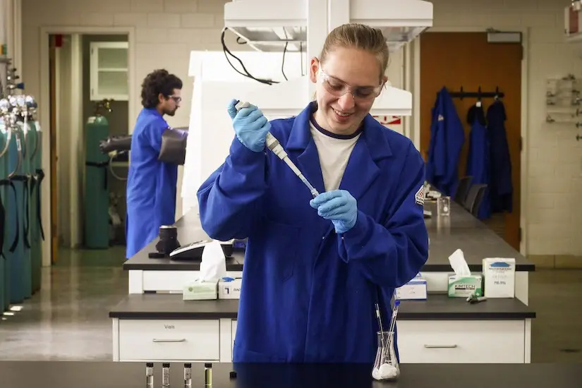 Lucky studied chemical engineering at Washington University in St. Louis as an undergraduate before moving to industry, spending two years as a chemical engineer at Barr Engineering in Minneapolis. Much of that time she worked in a partnership with the University of North Dakota’s Institute of Energy Studies. There, she says, she helped take processes from the lab to the bench scale and then to the industrial scale. “We would go from producing 60 grams of material at a time to 20 kilograms per hour. I found that process really fun and that was right at the heart of what I want to be doing with engineering: making discoveries and bringing them to a feasible scale,” she says. “But it was clear that I wouldn’t be able to implement and lead some of those projects without a PhD.”