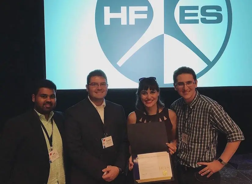 At the fall 2017 meeting of the Human Factors and Ergonomics Society (HFES), a team of undergraduate and graduate students at the University of Wisconsin-Madison received the gold tier of the Outstanding Student Chapter Award. The award was established in 1999 to recognize student chapters that have made significant contributions to the discipline, to HFES as a professional organization, and to their campus and community during the previous academic year (2016/2017). UW-Madison was one of 14 universities—and the only one in Wisconsin—to receive the gold award this year.