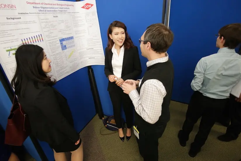 In May 2017, graduate student Dongting Zhao won the “best poster” award for her poster “Butene oligomerization over cobalt catalysts: effect of ammoniation temperature,” which she presented at the Catalysis Club of Chicago’s spring meeting. The club is a nonprofit organization of scientists and engineers in the Chicago area dedicated to advancing knowledge in the fields of catalysis and reaction mechanisms, and to fostering discussion among the club’s members. Zhao is co-advised by Harvey D. Spangler Professor of Chemical and Biological Engineering George Huber and Ive Hermans, associate professor of CBE and chemistry.