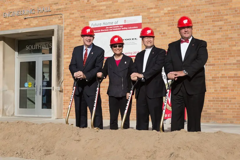 On Sept. 18, 2017, the Department of Civil and Environmental Engineering at the University of Wisconsin-Madison hosted a groundbreaking ceremony for the Jun and Sandra Lee Wisconsin Structures and Materials Testing Laboratory. The new facility will allow structural engineering faculty, students, collaborators and industry partners to forge new ground in full-scale testing and evaluating structural elements and building materials.