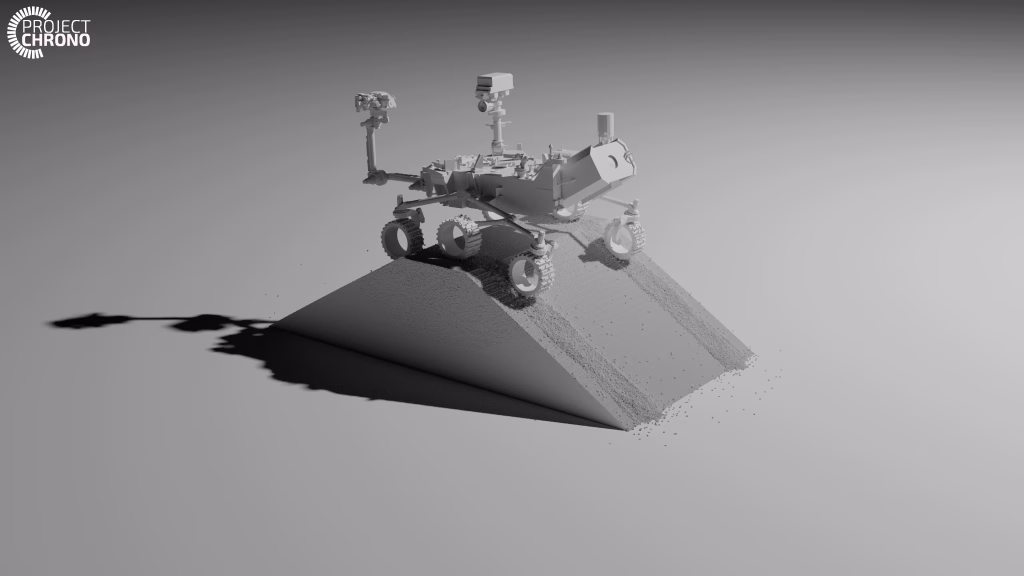 The researchers’ discovery resulted from their work on a NASA-funded project to simulate the VIPER rover, which had been planned for a lunar mission. The team leveraged Project Chrono, an open-source physics simulation engine developed at UW–Madison in collaboration with scientists from Italy. This software allows researchers to quickly and accurately model complex mechanical systems — like full-size rovers operating on “squishy” sand or soil surfaces.